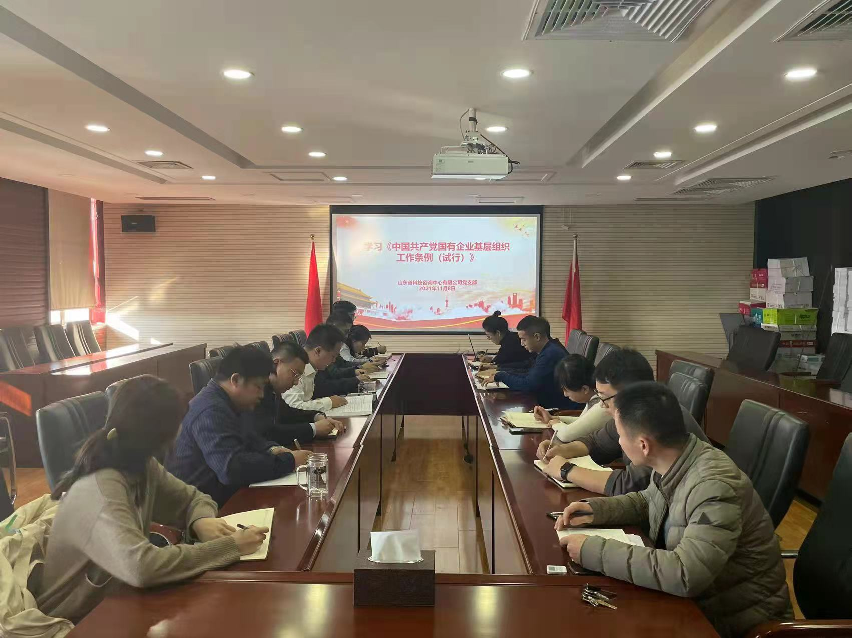 為貫徹落實新時代黨的建設(shè)總要求和新時代黨的組織路線,堅持和加強(qiáng)黨對國有企業(yè)的全面領(lǐng)導(dǎo),11月8日下午,山東省科技咨詢中心黨支部召開黨員會議,專題學(xué)習(xí)了《中國共產(chǎn)黨國有企業(yè)基層組織工作條例(試行)》(以下簡稱《條例》)。黨支部書記魏正杰進(jìn)行了領(lǐng)學(xué)。